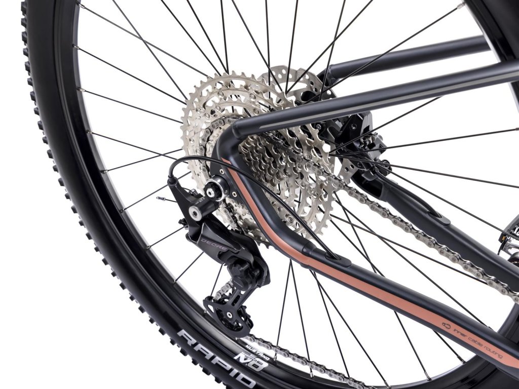 - Zadný náboj: Shimano FH-MT400-B (12 mm thru-axle / 148 mm)