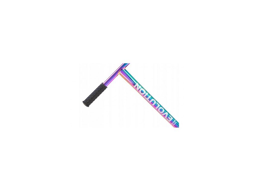 Riadidlá v tvare T predstavujú jeden z mechanicky najrobustnejších tvarov pre freestyle kolobežky — poskytujú vynikajúcu tuhosť a istotu pri každom triku. Sú vyrobené z Premium High Carbon Steel — uhlíkovej ocele, ktorá kombinuje vysokú pevnosť s nízkou hmotnosťou. Steny rúrky majú hrúbku 1,5 mm a priemer 35 mm. Upevnenie je riešené pomocou trojskrutkového prstenca, ktorý zaručuje maximálnu stabilitu spojenia.