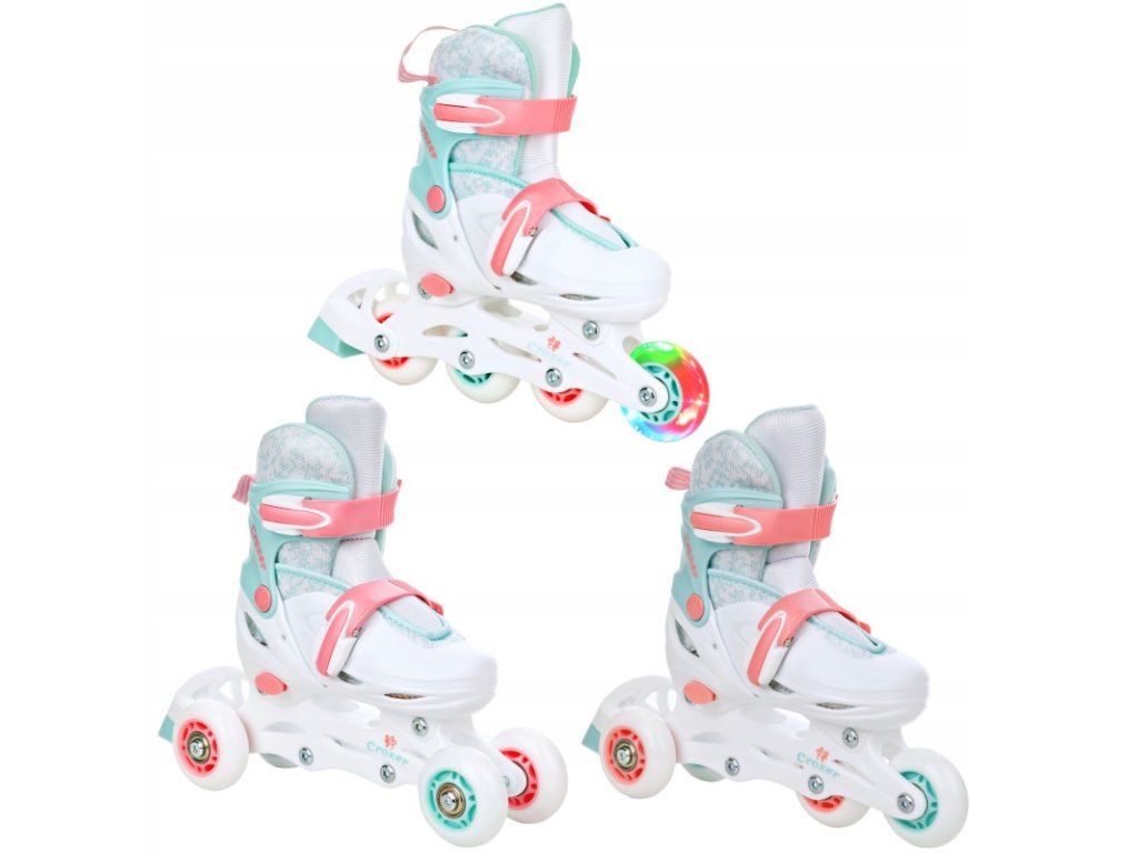 Kolieskové korčule Croxer Inez sú navrhnuté špeciálne pre najmenších korčuliarov, ktorí robia svoje prvé kroky na kolieskach. Nastaviteľná veľkosť v rozsahu EU 26–29 (15,5 cm – 18,0 cm) umožňuje prispôsobiť korčule rastúcej nožičke dieťaťa, čím zaručuje dlhšiu životnosť a lepší pomer ceny a výkonu.