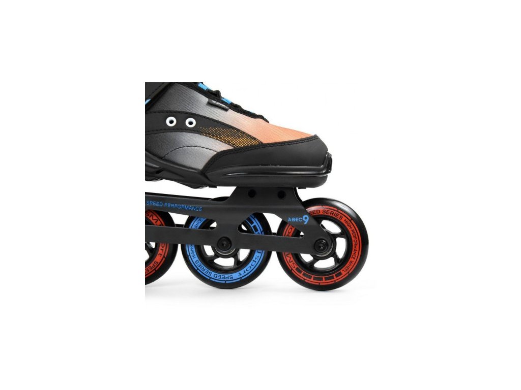 Veľké polyuretánové kolesá s priemerom 90 mm v kombinácii s vysoko valivými ložiskami ABEC-9 posúvajú výkon korčulí na novú úroveň – jazda je rýchlejšia, plynulejšia a pohodlnejšia ako kedykoľvek predtým. Profilovaná škrupina poskytuje stabilitu a správne postavenie chodidla počas celej jazdy.