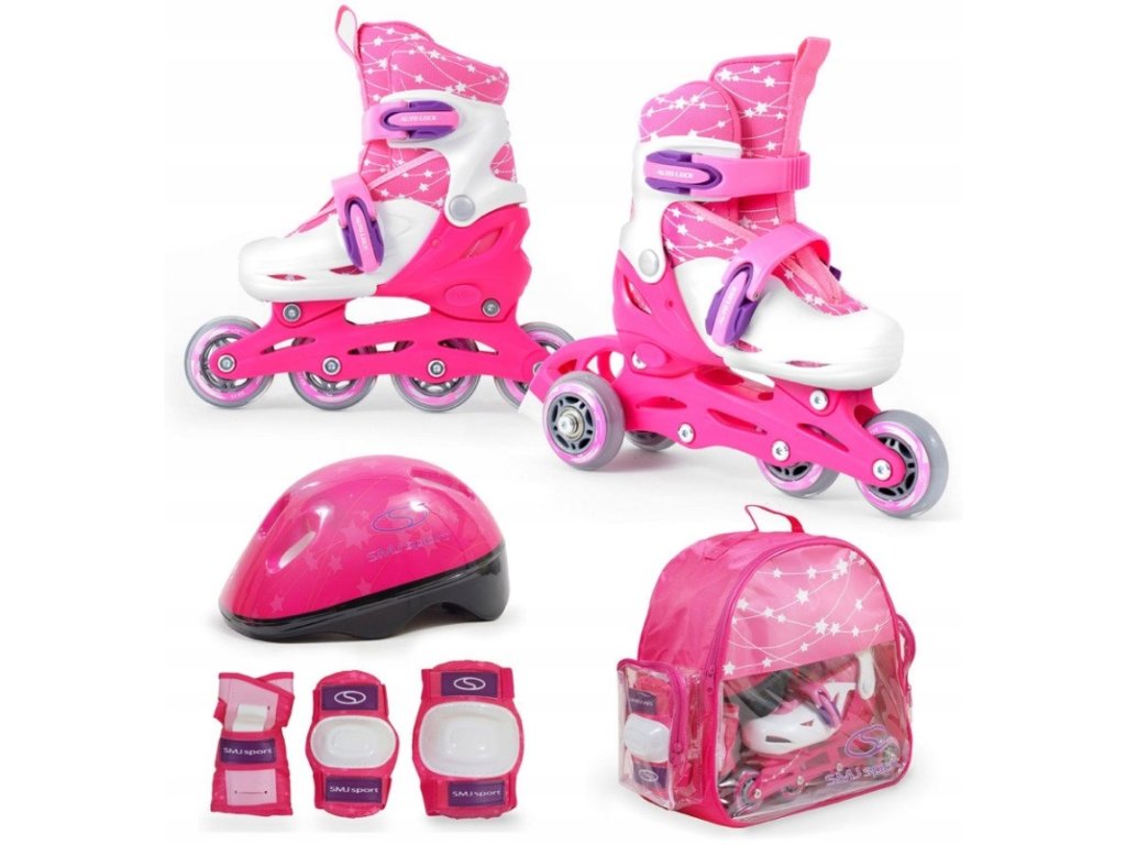 Sada COMBO SMJ Sport BS901P 2v1 je kompletným korčuliarskym balíčkom pre najmenších korčuliarov. Kolieskové korčule s nastaviteľnou veľkosťou rastú spolu s detskou nožičkou vďaka jednoduchému systému nastavenia veľkosti v rámci štyroch veľkostí – zmena je rýchla a jednoduchá bez nutnosti nástrojov.