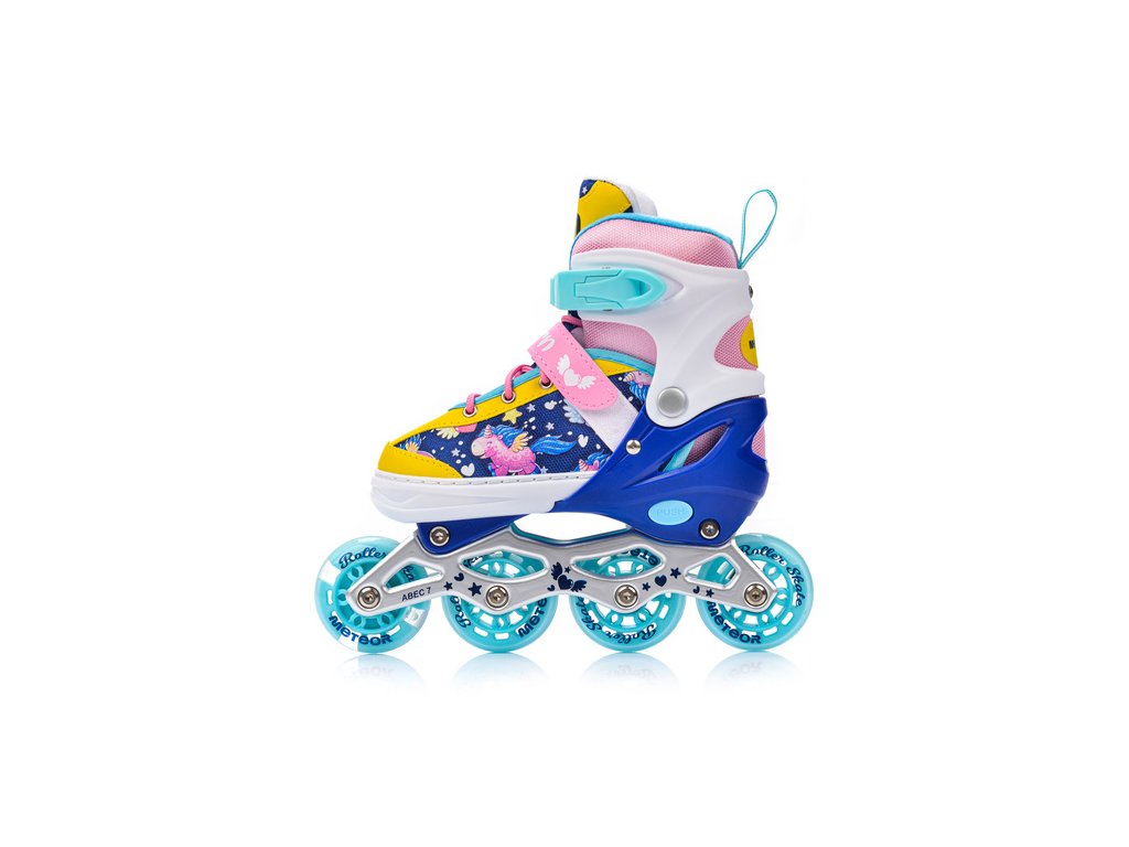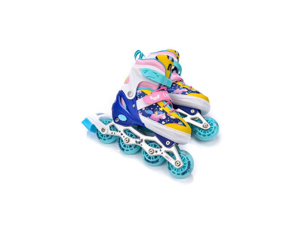 Kolieskové korčule Meteor v atraktívnom motíve Unicorn sú navrhnuté pre mladých rekreačných korčuliarov, ktorí chcú vyčnievať z davu. Jedinečný systém 4 v 1 ponúka štyri konfigurácie v jednom produkte – inline korčule, ľadové korčule, kolieskové korčule aj štvorkolkové korčule – vďaka čomu sú vhodné na celoročné použitie v lete aj v zime.