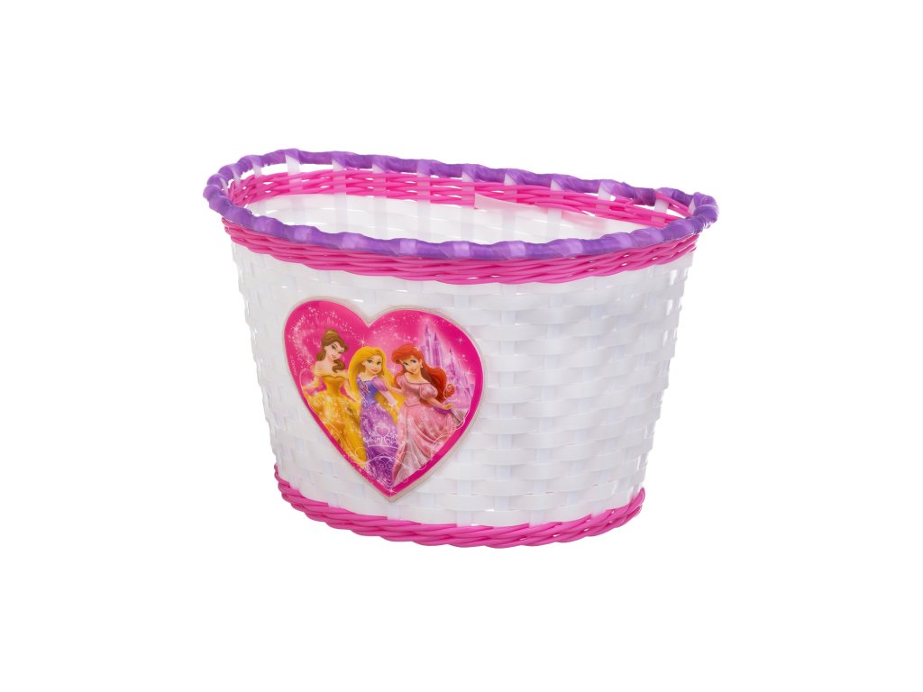 Biela farba symbolizuje čistotu a nevinnosť princezien. Fialový okraj dodáva košíku kráľovský vzhľad. Princess motív osloví každú malú milovníčku rozprávok. Elegantný vzhľad perfektne ladí s detským bicyklom.
