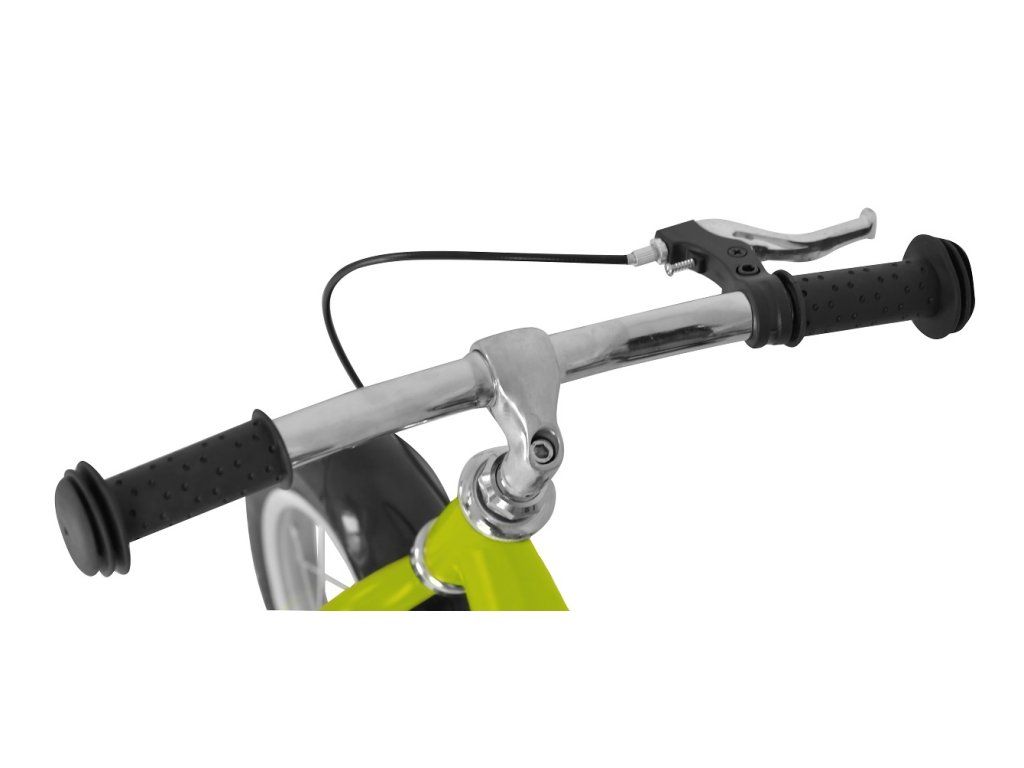 Odrážadlo je vybavené zadnou ručnou V-brzdou s hliníkovými páčkami — rovnaký systém ako na klasických bicykloch.