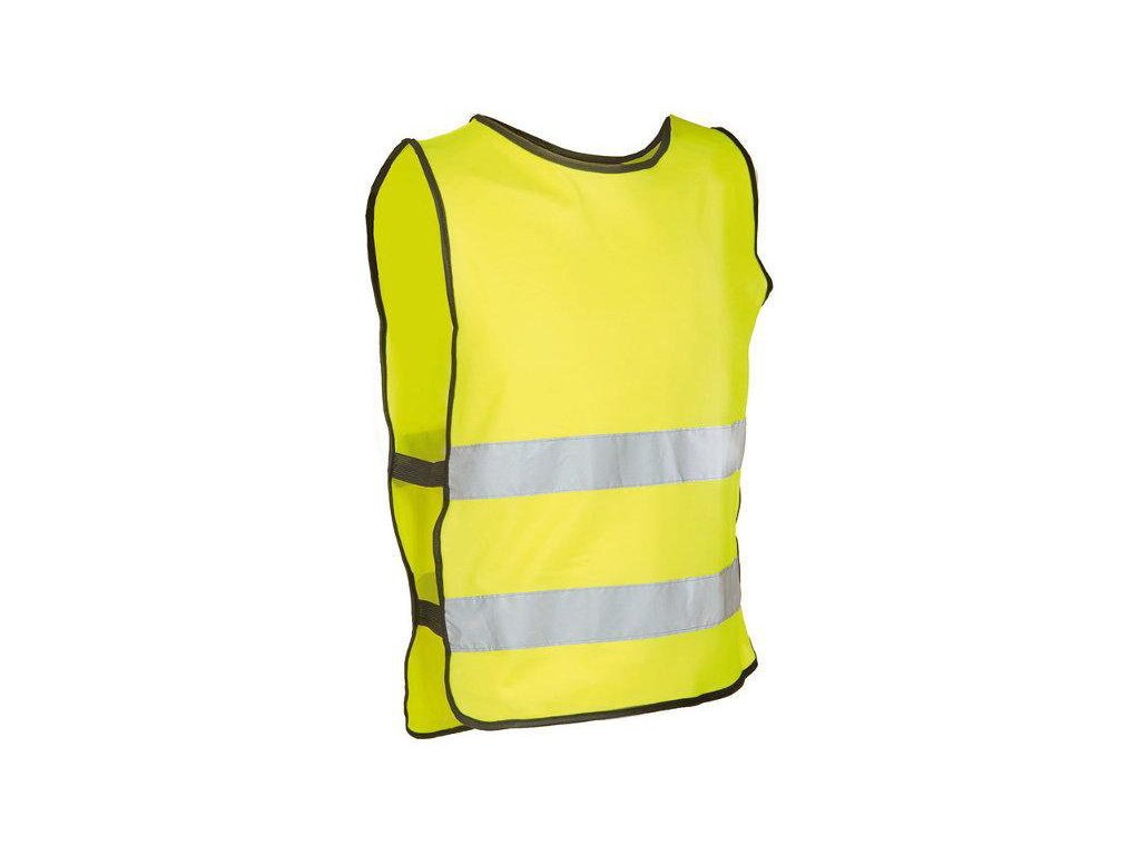- Vesta je vyrobená z ľahkého, priedušného a odolného polyesterového materiálu v jasnej fluorescenčnej žltej farbe, ktorá vyniká cez deň a vo svetle.