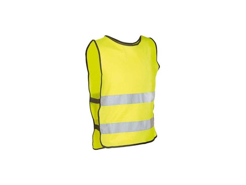 - Vesta je vyrobená z ľahkého, odolného a priedušného polyesterového materiálu v jasnej fluorescenčnej žltej farbe, ktorá zvyšuje viditeľnosť počas dňa.