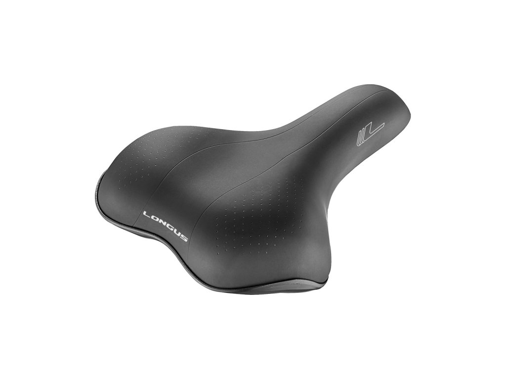 Pohodlné sedlo s výrazne zníženým stredovým pásom a kvalitným odolným zvrškom poskytuje vynikajúce pohodlie pri jazde v meste aj pri jazde v ľahkom teréne. Pod odolným polyuretánovým povrchom je vysoko pružná pena, ktorá sľubuje pohodlie už na prvý dotyk. Po obvode je sedlo chránené plastovým krytom, ktorý zabraňuje poškodeniu sedla pri páde bicykla alebo ak bicykel opriete. Pevné oceľové koľajničky zvyšujú životnosť sedla.